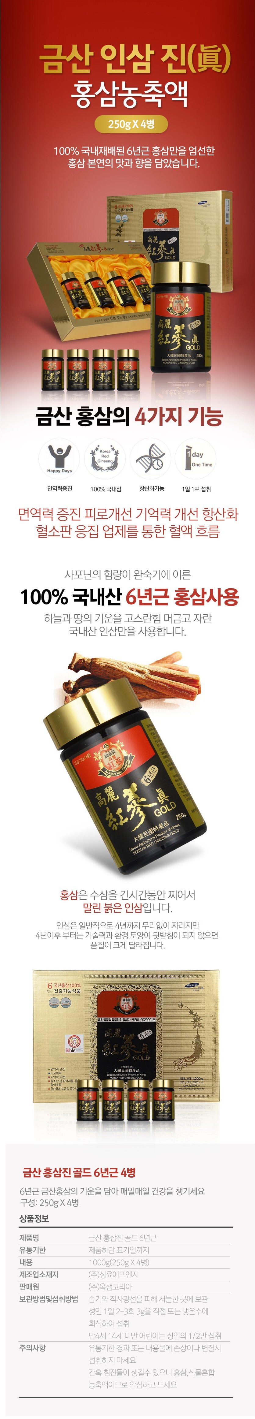 금산 홍삼진골드 6년근 250gx4병