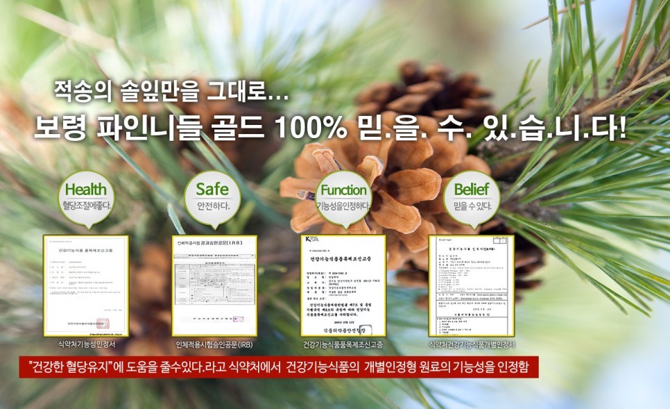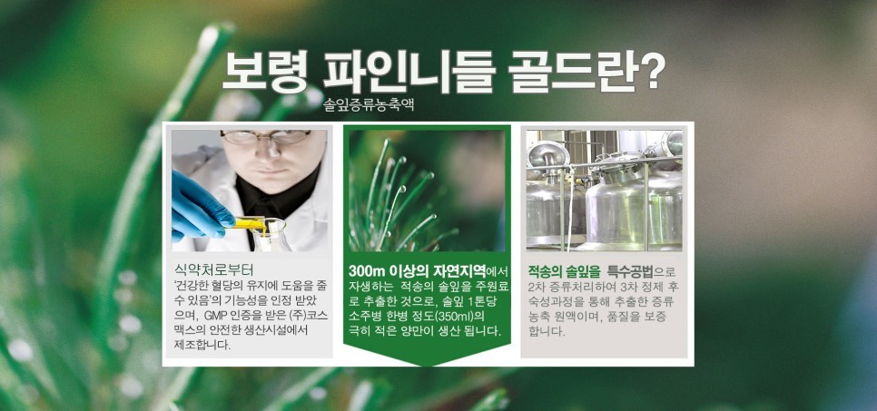 적송의 솔잎만을 그대로 보령 파인니들 골드 100% 믿을 수 있습니다.