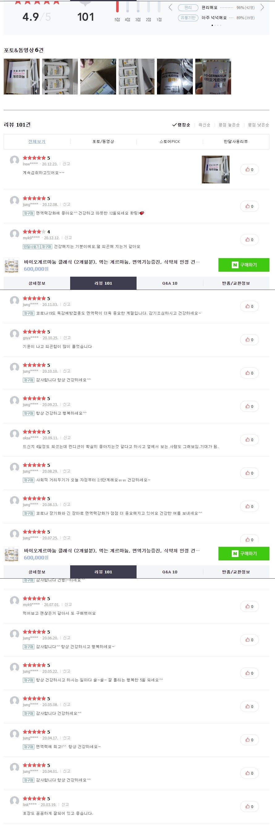 주원료 및 함량 바이오게르마늄 효모, 1일 섭취량 1,200mg