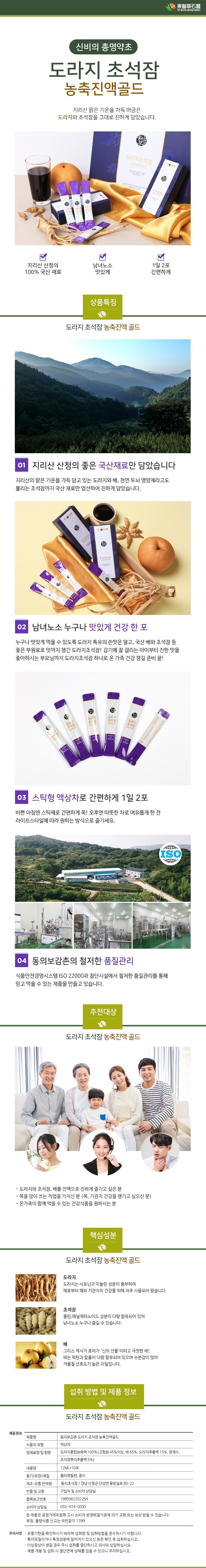지리산 맑은 기운을 가득 머금은 도라지와 초석잠을 그대로 진하게 담았습니다.