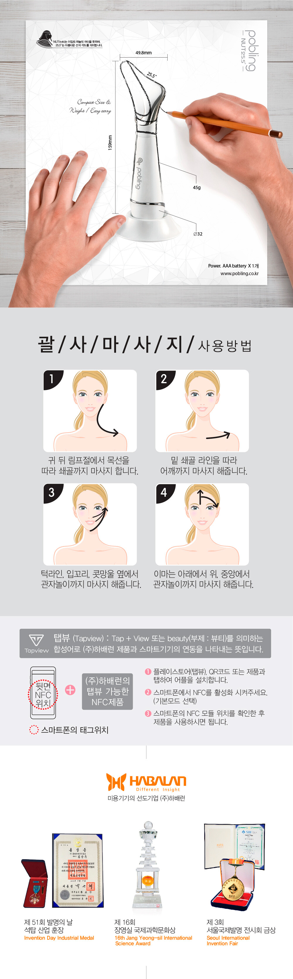 포블링 누트25.5° 괄사 갈바닉 이온 마사지기